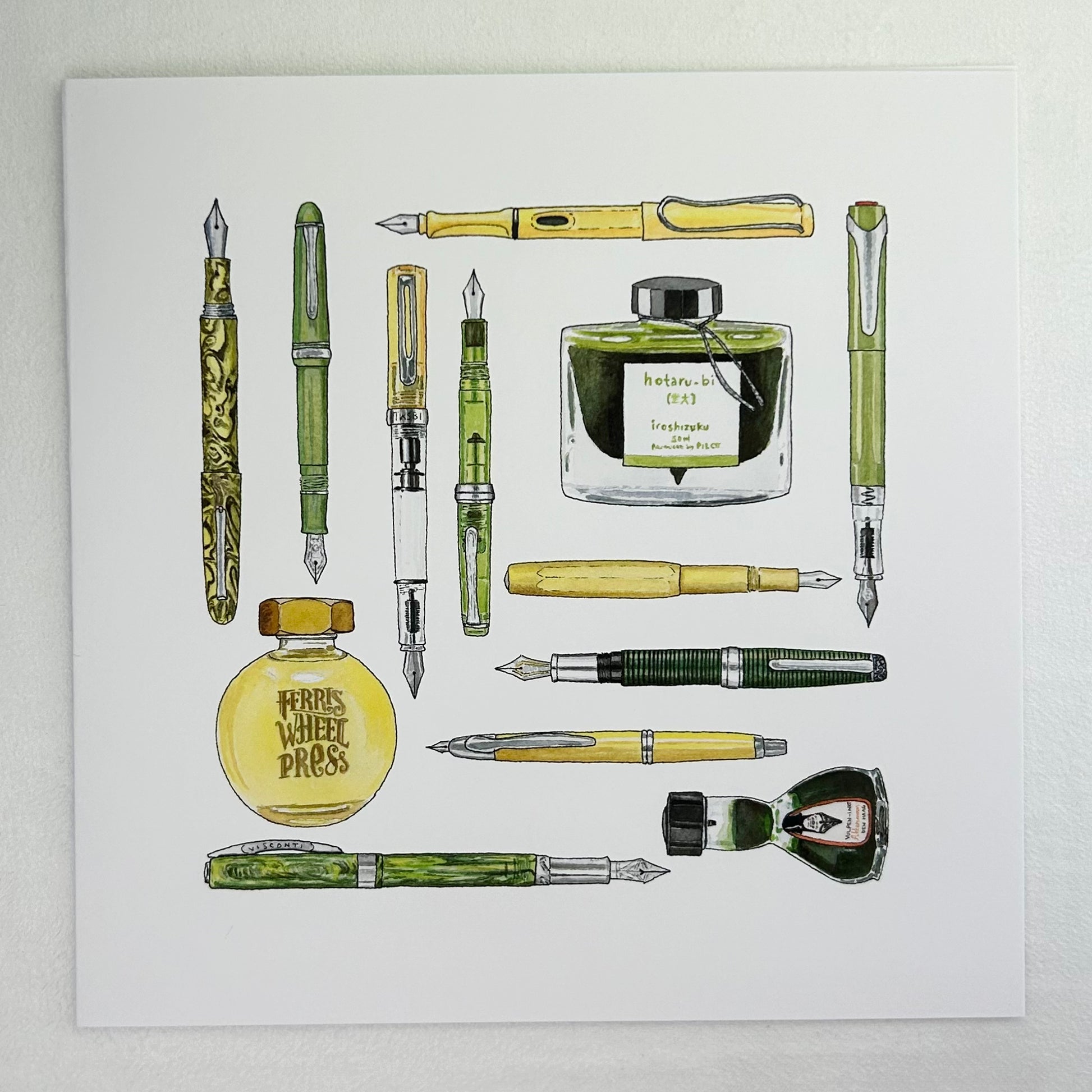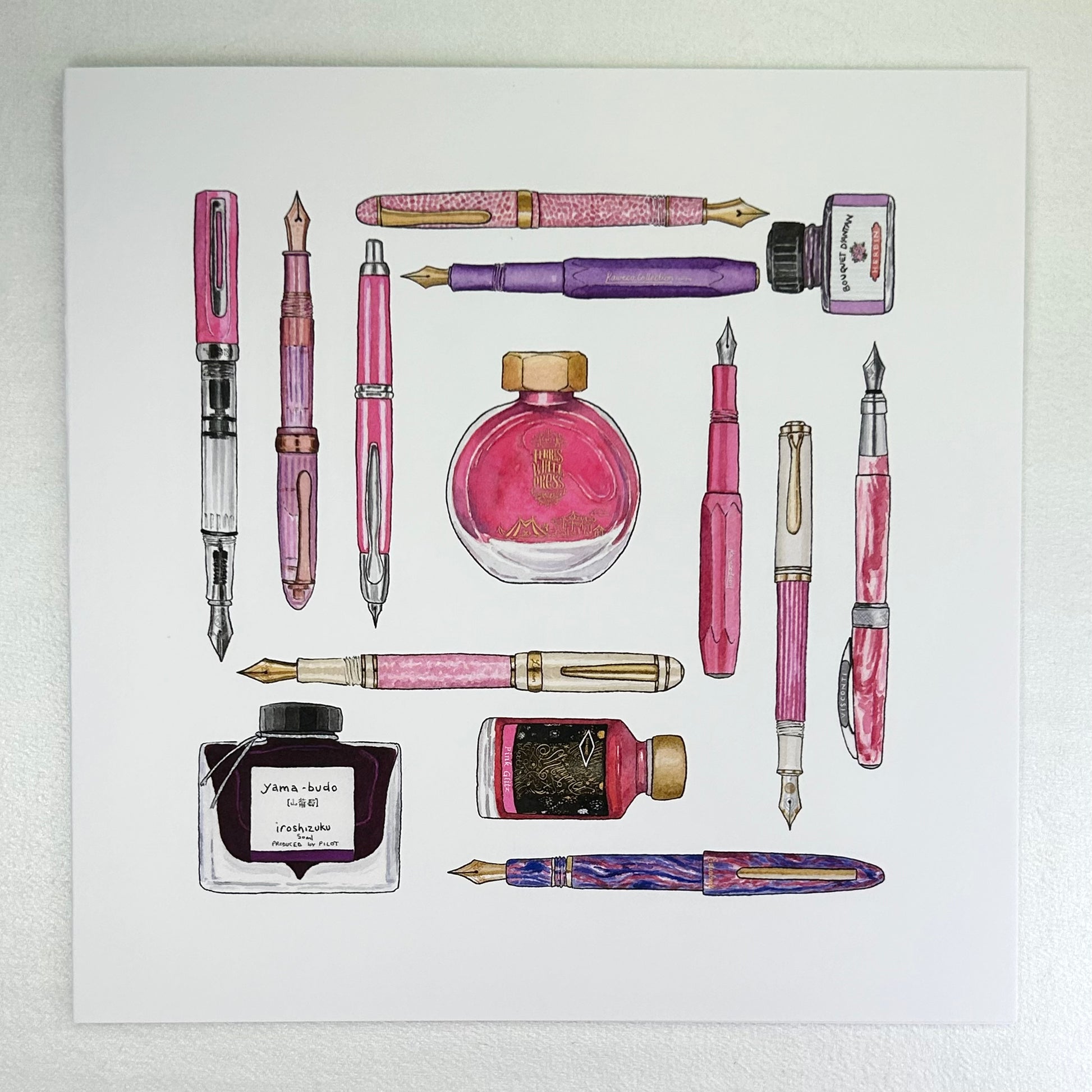 Enjoy all of the colors of inks and pens in this series in one set for a special price. Send them as thoughtful cards or frame them as beautiful works of art. Six total cards: