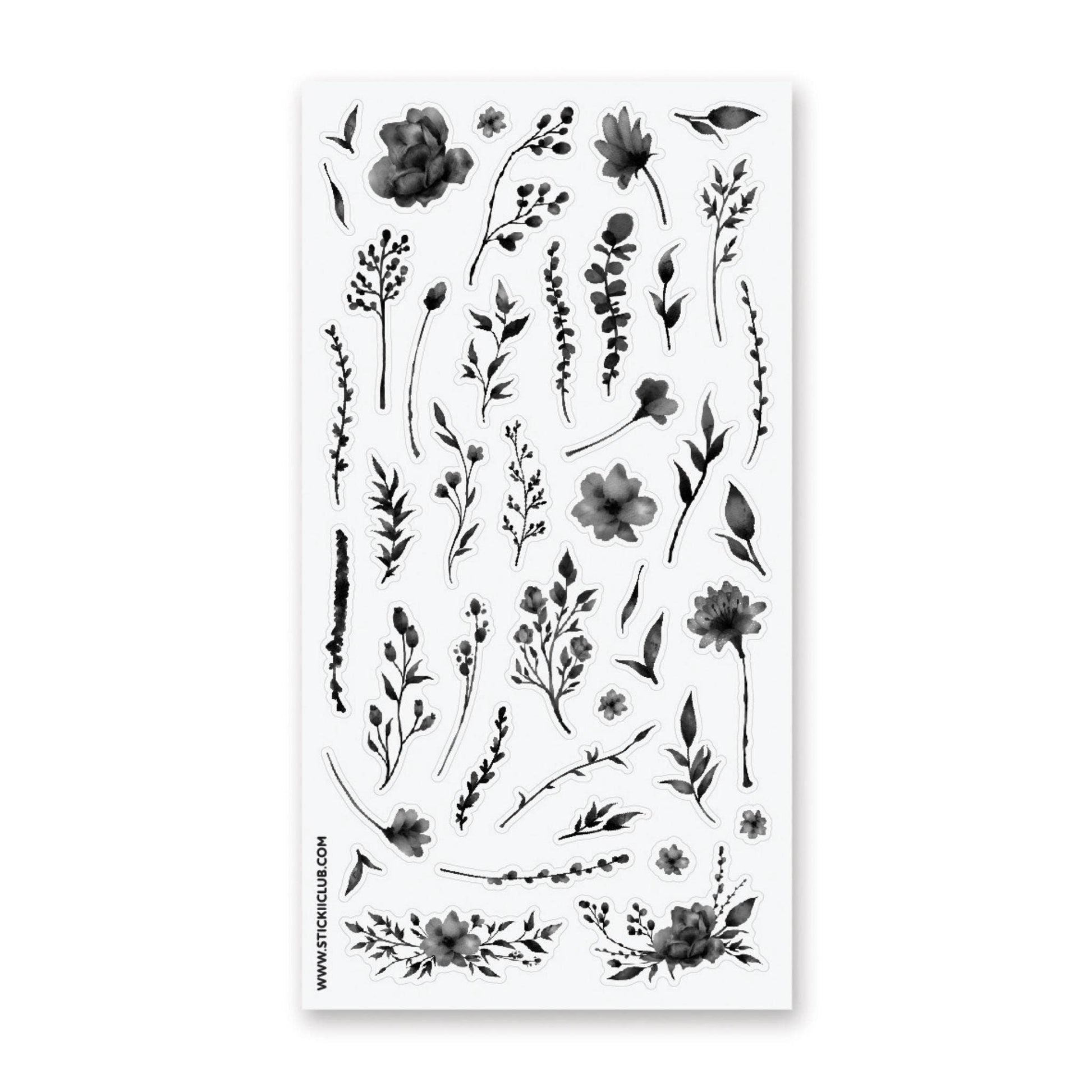 This features a variety of delicate plants and flowers, rendered in a dark and inky hue! 🖤