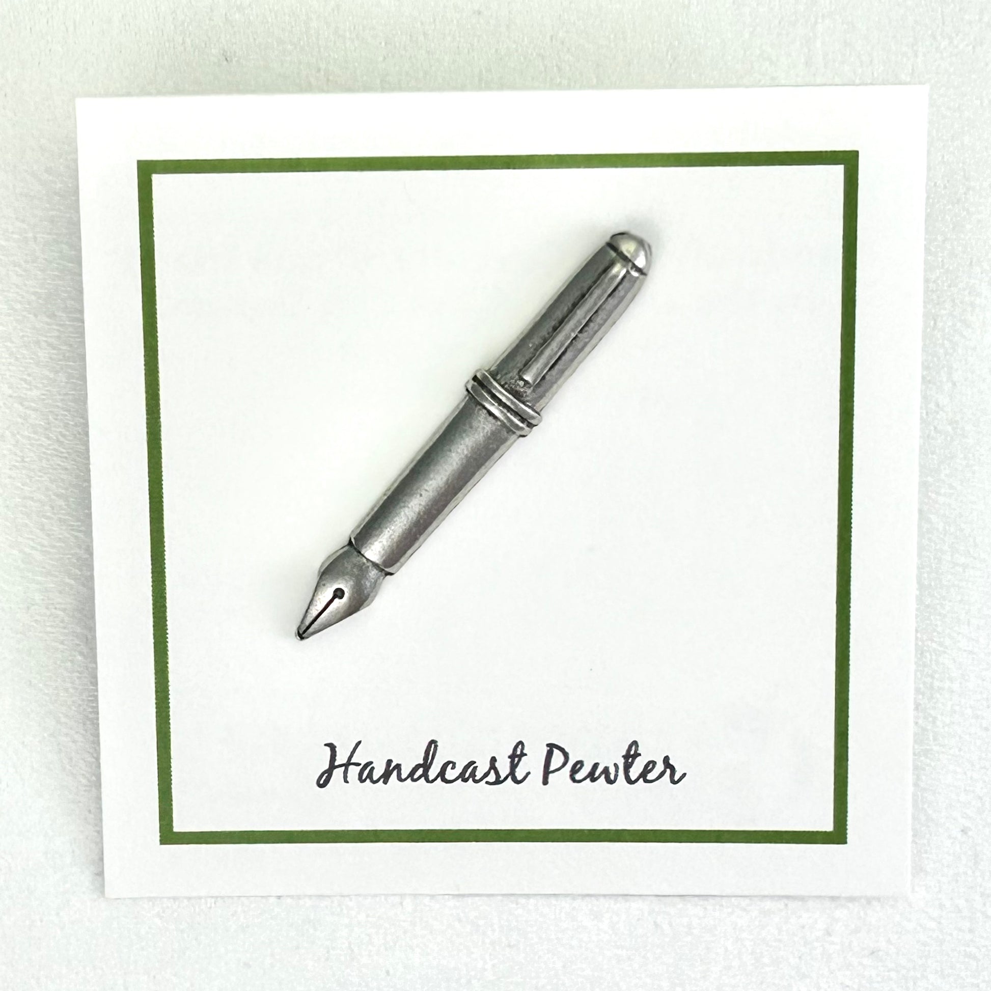Wear your fountain pen fandom on your lapel, bag or badge lanyard. Handcast in solid, lead-free fine pewter, each piece is an original three dimensional sculpture signed by the artist, Jim Clift, and made in Rhode Island. The pin is 1.5" long and fastens with a metal butterfly clutch.