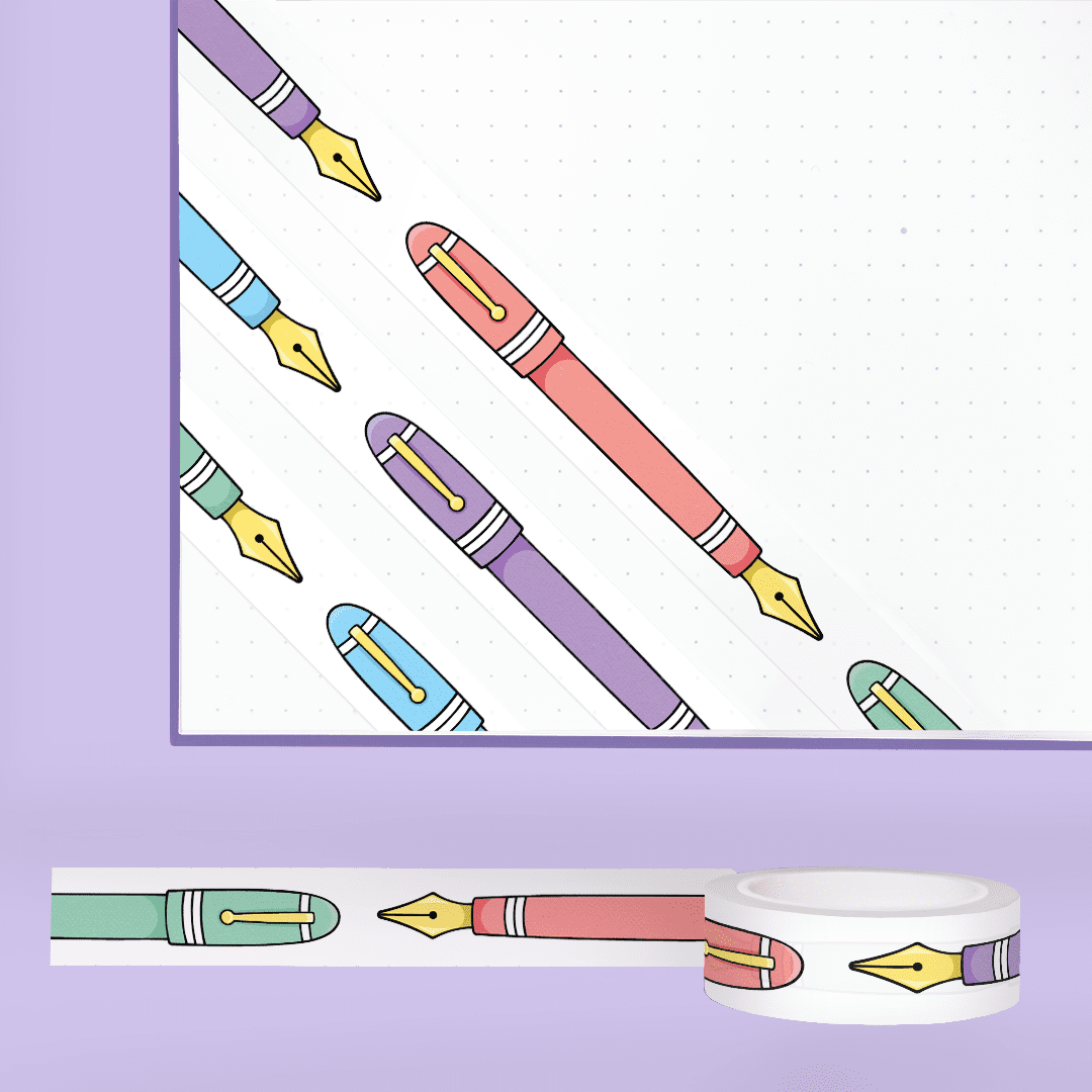 Calling all fountain pen fans! This charming rainbow array of fountain pen illustrations is the perfect accompaniment for your new pen day spreads, ink swatching pages, or journal entries. Each extra long roll is 32 feet long and ½ inch wide, and designed by Oops a Daisy.