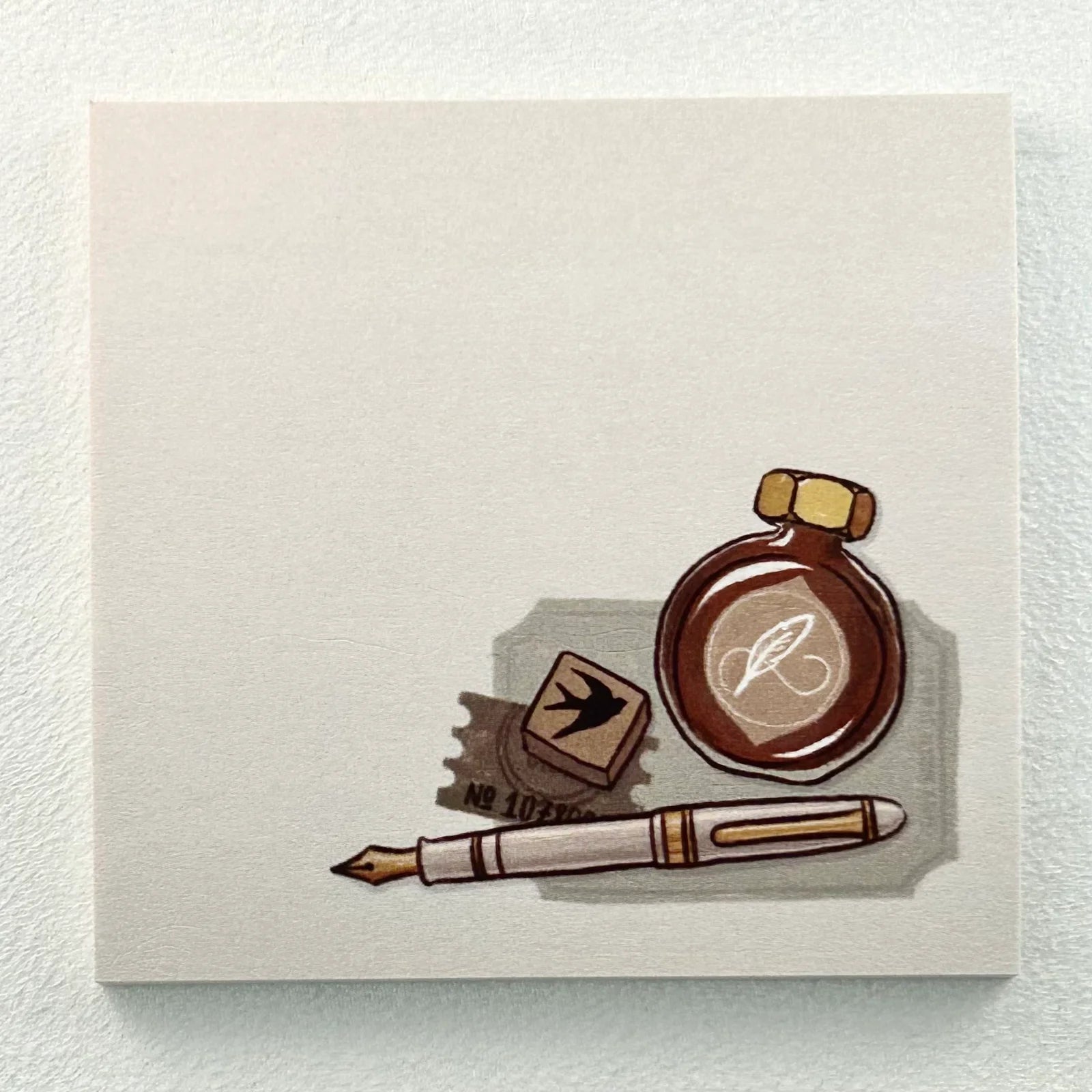 This sticky notepad features a lovely illustration of a fountain pen, ink, and stationery supplies. Perfect for on-the-go note-jotting, flagging pages in books, and decorating journals. Each pad is 3″ x 3″ and features 50 sheets of pen-friendly paper.
