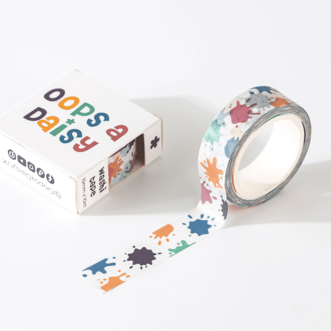 Are they ink blots? Are the splashes of paint? They're whatever your imagination says they are! Each roll if washi tape is 32 feet long and ½ inch wide. This extra-long roll is ideal for adding colorful panache to your journal, planner, or other artistic project.