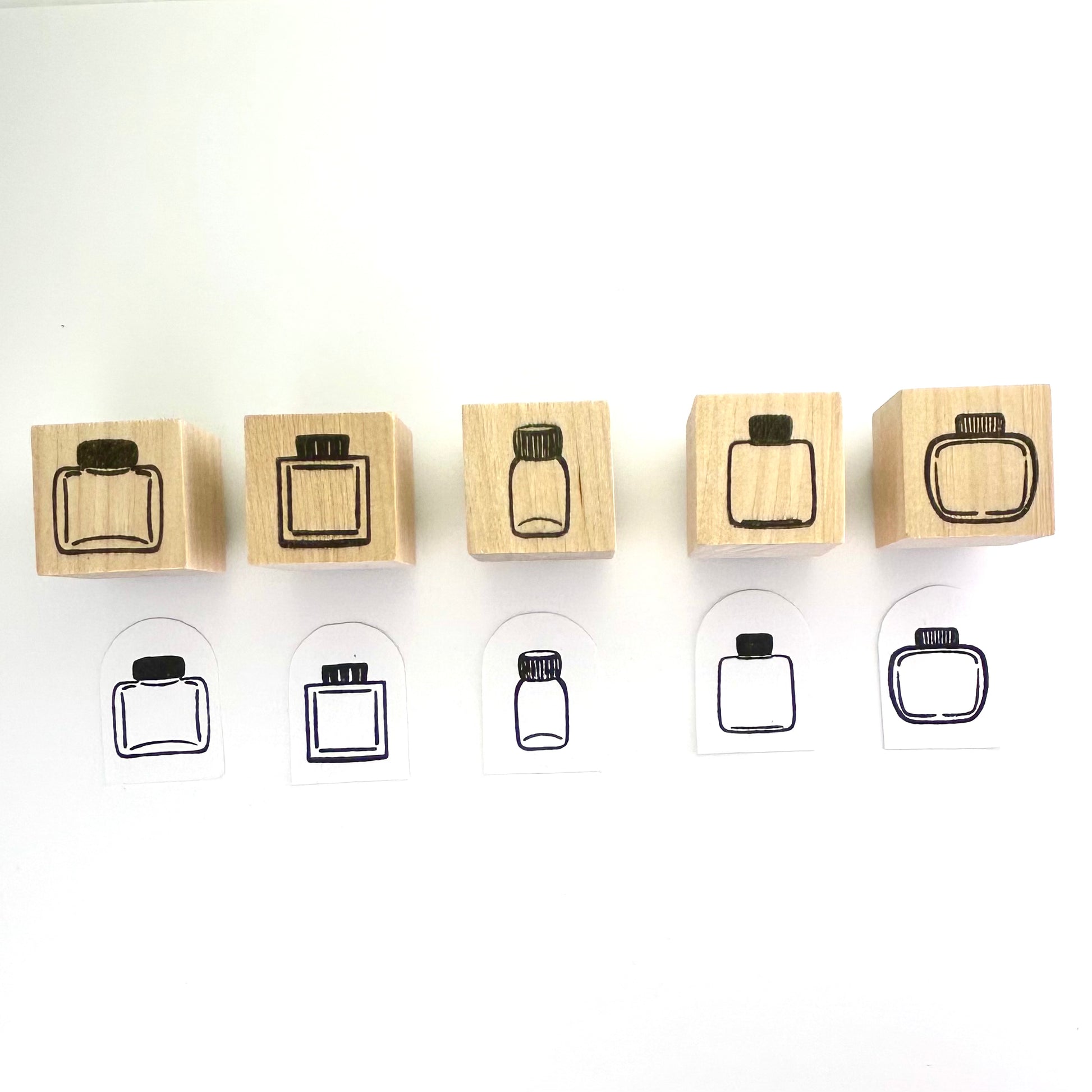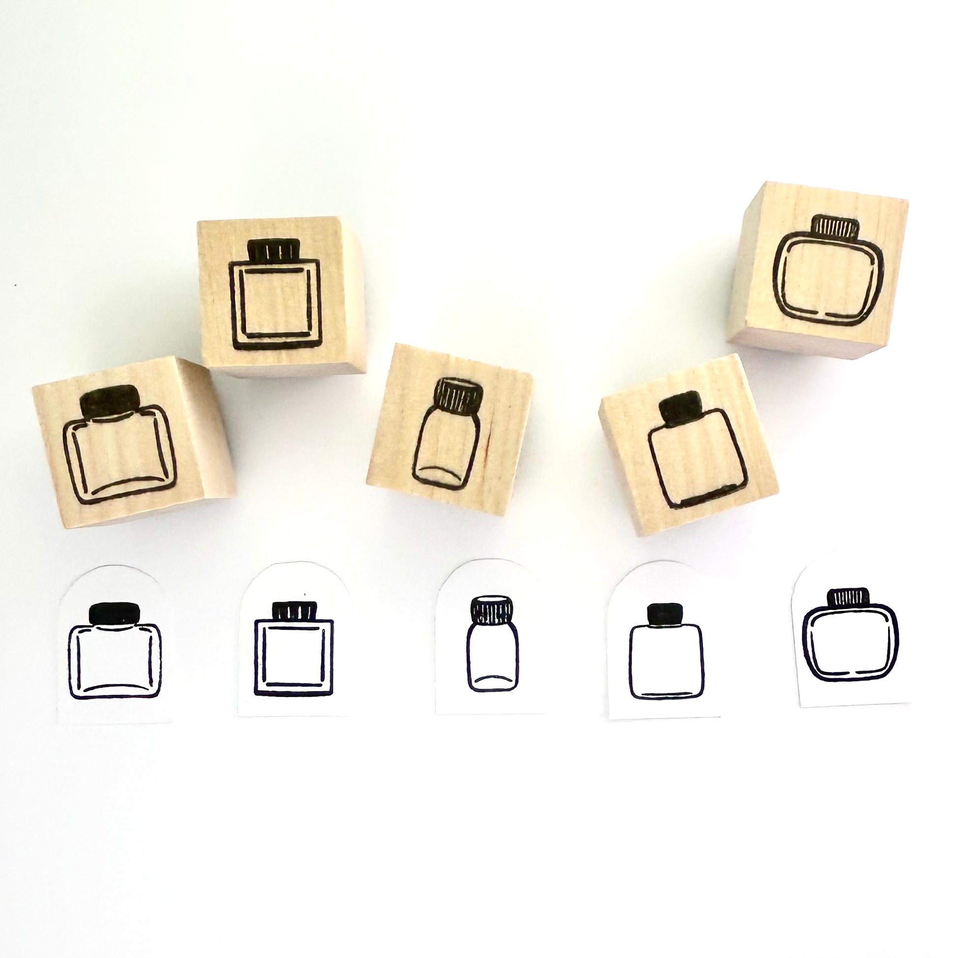 Mini ink bottle stamps, full set of 5