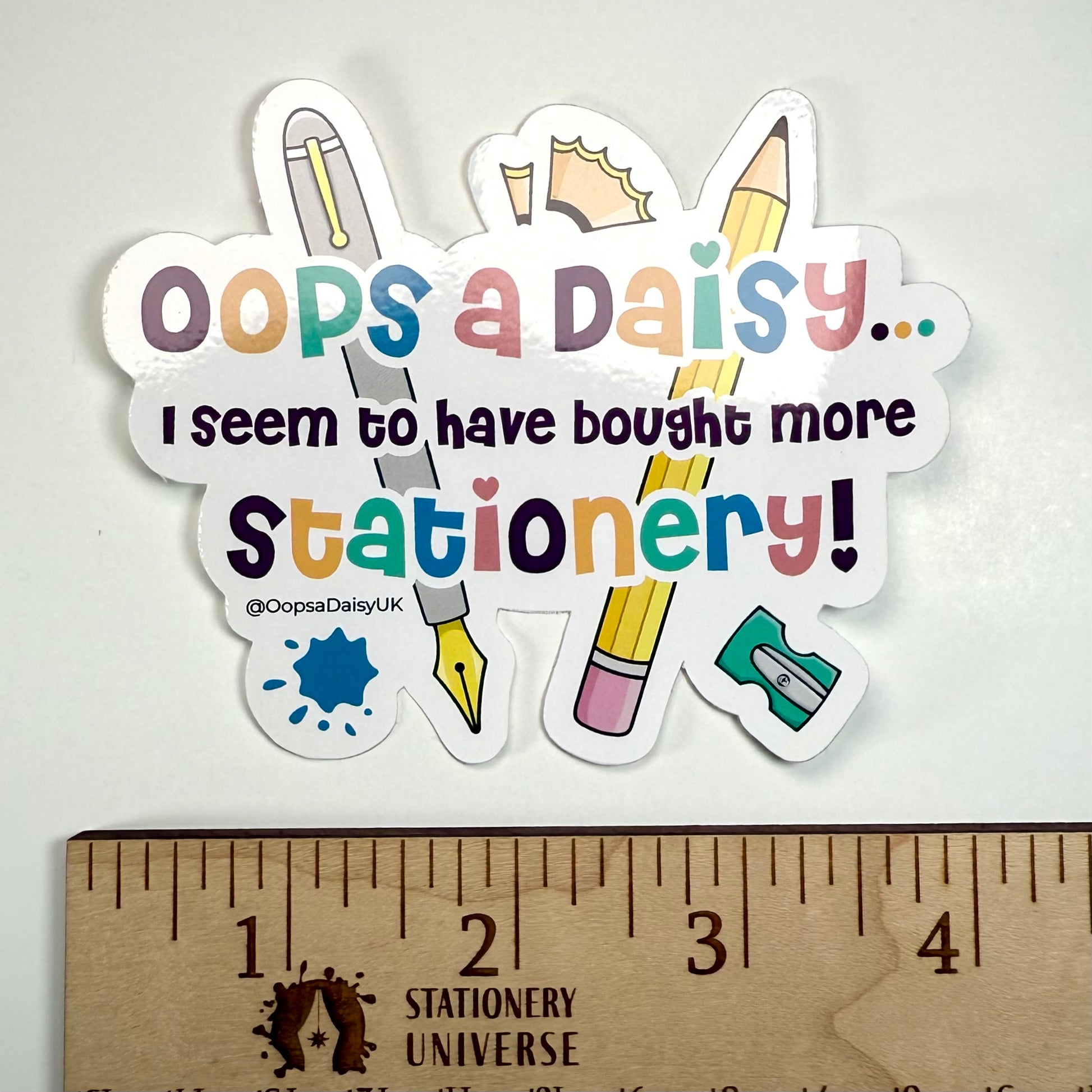 Who among us hasn't had a whoopsie moment, when a pen or notebook or washi tape just somehow magically got itself bought. Sometimes the stationery just buys itself! Find your fellow oops a daisies in the wild with this fantastic, relatable sticker, adorned with whimsically illustrated stationery items.