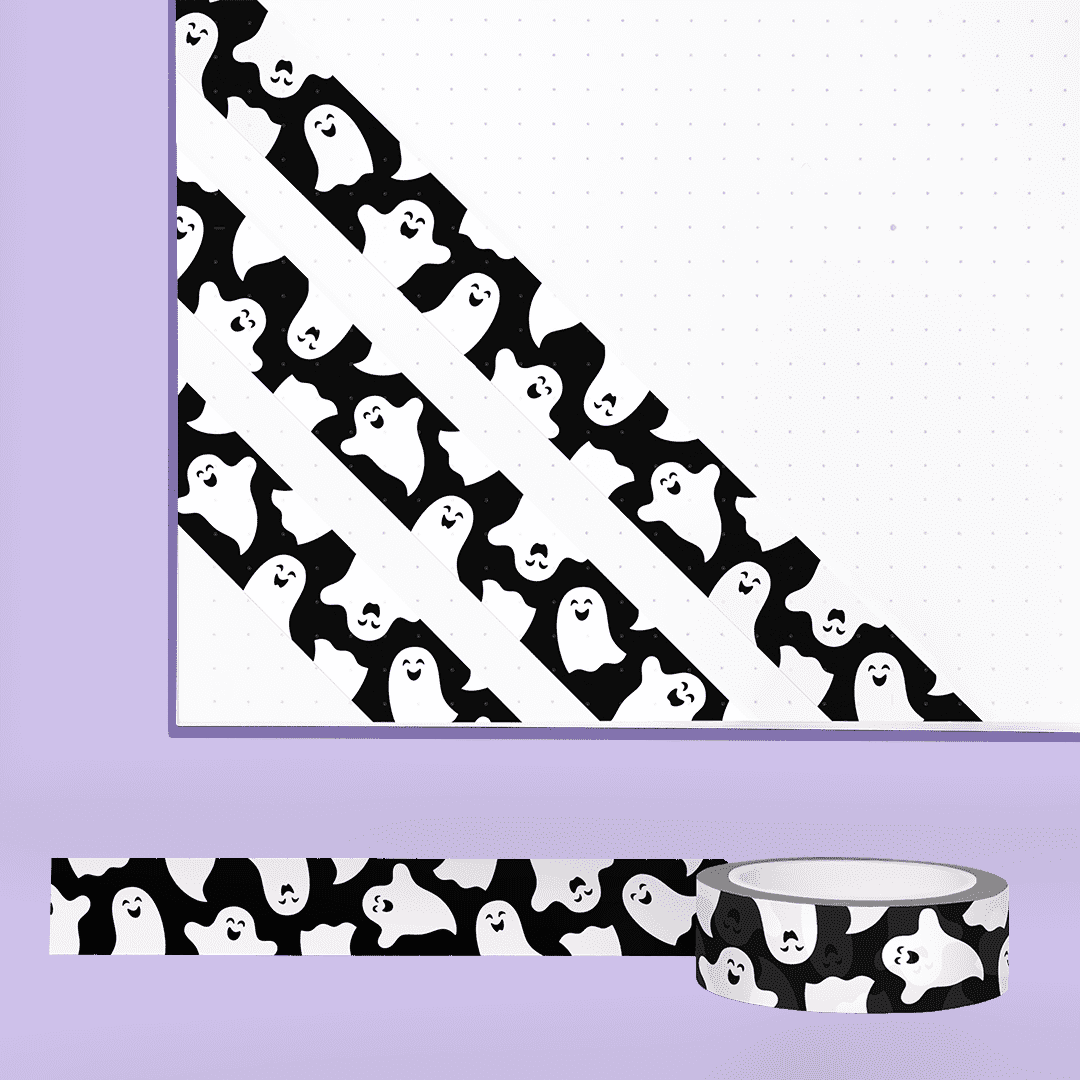 Nothing fiendish about these friendly phantoms! This not-so-spooky black washi features a floating flock of phantasms. Each extra long roll is 32 feet long and ½ inch wide, and designed by Oops a Daisy.