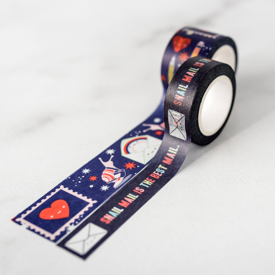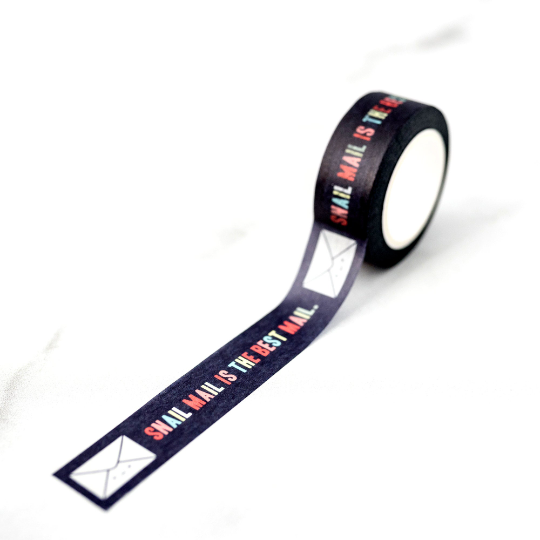 Snail mail is the best mail! Celebrate it by adding a whimsical touch to your letters, journals, and gifts with this Snail Mail is the Best Mail washi tape. Featuring charming snail illustrations on semi-translucent paper tape, it’s perfect for decorating envelopes or brightening up your creative projects. Measuring 15mm wide by 32-feet long, this playful tape is perfect for all your snail mail moments.