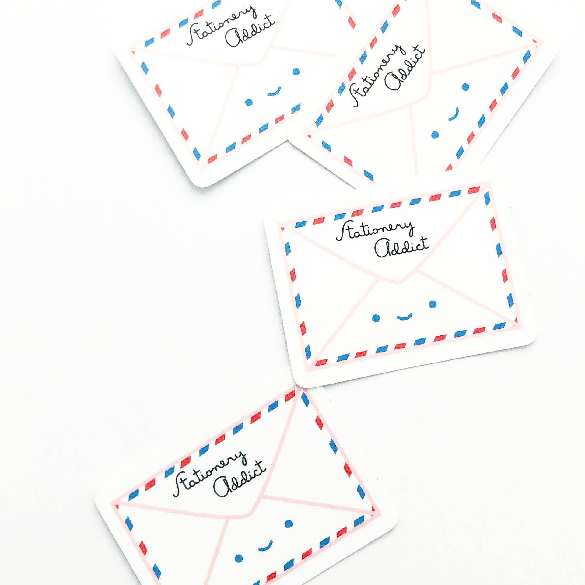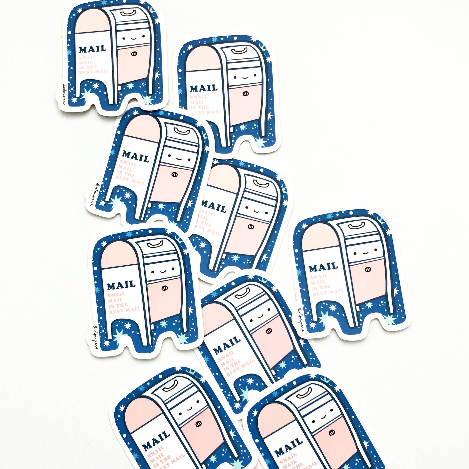We've searched the universe and it's unanimous: snail mail is the best! Express your affection with these fun stickers! Perfect for decorating your laptop, sketchbook, or any flat surface. This set includes one each of three designs: a Cosmic Mailbox, a Stationery Addict Envelope, and a Stationery Lover Envelope. Made from matte vinyl, they’re both scratch-resistant and weatherproof. Each sticker measures up to 2.75 inches in width or length.